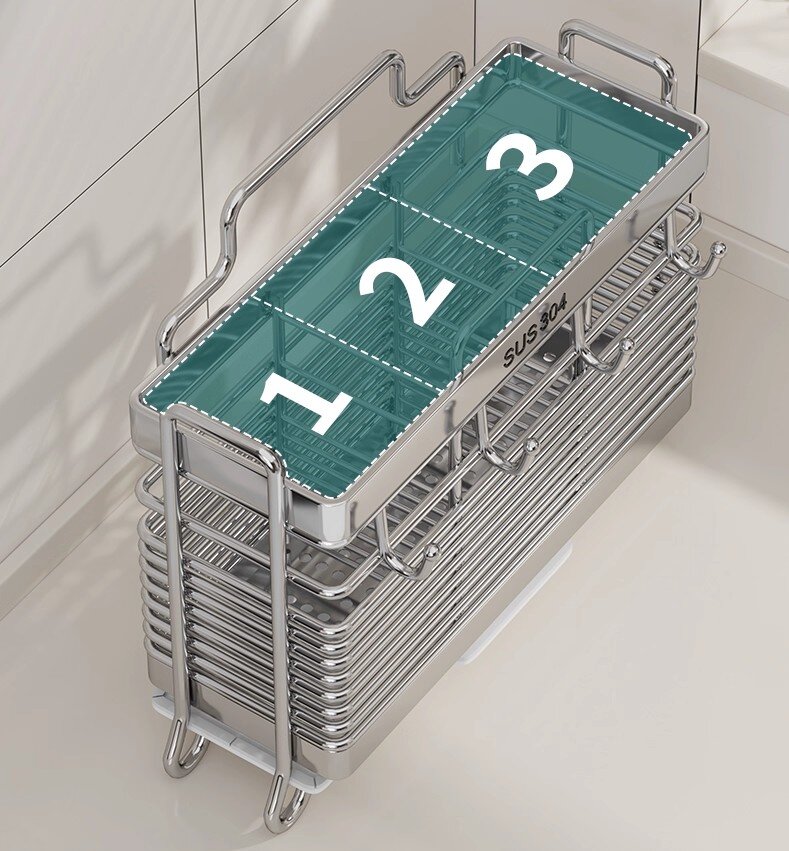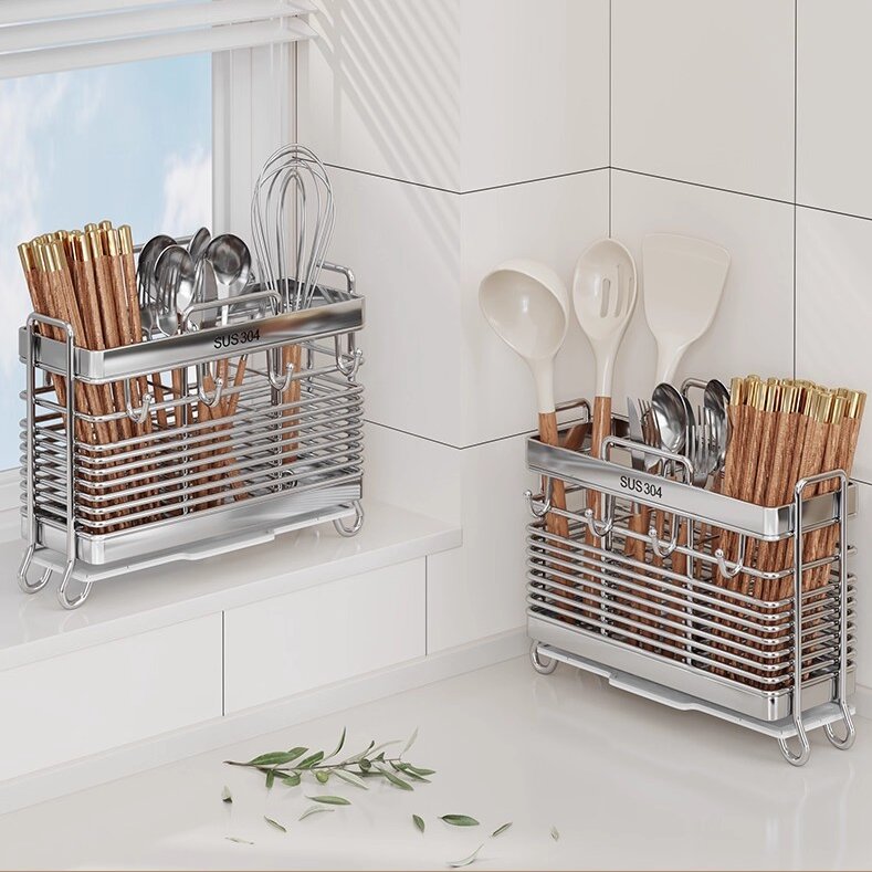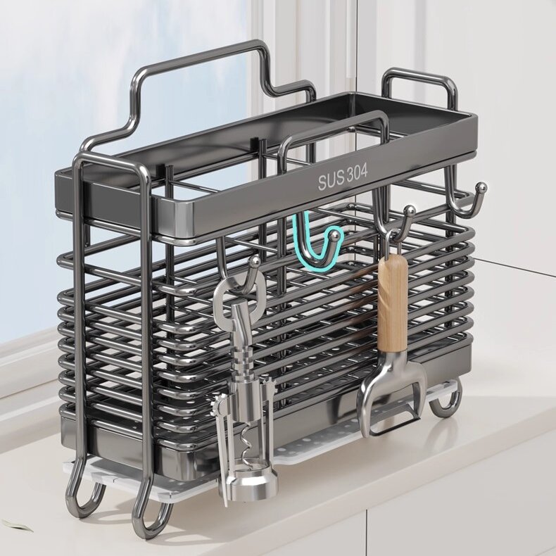 Tá feidhmiúlacht ríthábhachtach maidir le hearraí cistine, agus ní díomá an sealbhóir acra seo. Is minic a dheartar na frámaí le bonn cobhsaí, rud a chuireann cosc ar thipping fiú nuair a bhíonn tú ag rummaging trí do chuid uirlisí agus tú faoi deifir. Ina theannta sin, tagann roinnt samhlacha le gnéithe cosúil le tráidirí inbhainte nó urranna atá sábháilte do mhiasniteoirí. Fágann sé seo go bhfuil an glanadh mór, mar is féidir leat na codanna salacha a tharraingt amach agus iad a chaitheamh sa mhiasniteoir, murab ionann agus roinnt sealbhóirí atá deacair a ghlanadh mar gheall ar chúinní agus crannies atá deacair a bhaint amach. Ina theannta sin, déantar airde agus doimhneacht na n-urrann a bharrfheabhsú go hiondúil chun raon leathan de mhéideanna acra a fheistiú, ó thaespúnóga beaga go dtí spúnóga móra riartha. Déan é seo a chur i gcomparáid le sealbhóirí atá ró-éadomhain, rud a fhágann go dtiteann uirlisí amach, nó atá ró-dhomhain, rud a fhágann go bhfuil sé deacair míreanna a aisghabháil. Faigheann Sealbhóir Acra Trí Fhráma an chothromaíocht cheart, ag tairiscint feidhmiúlacht phraiticiúil a fhreastalaíonn ar do riachtanais chócaireachta laethúla.